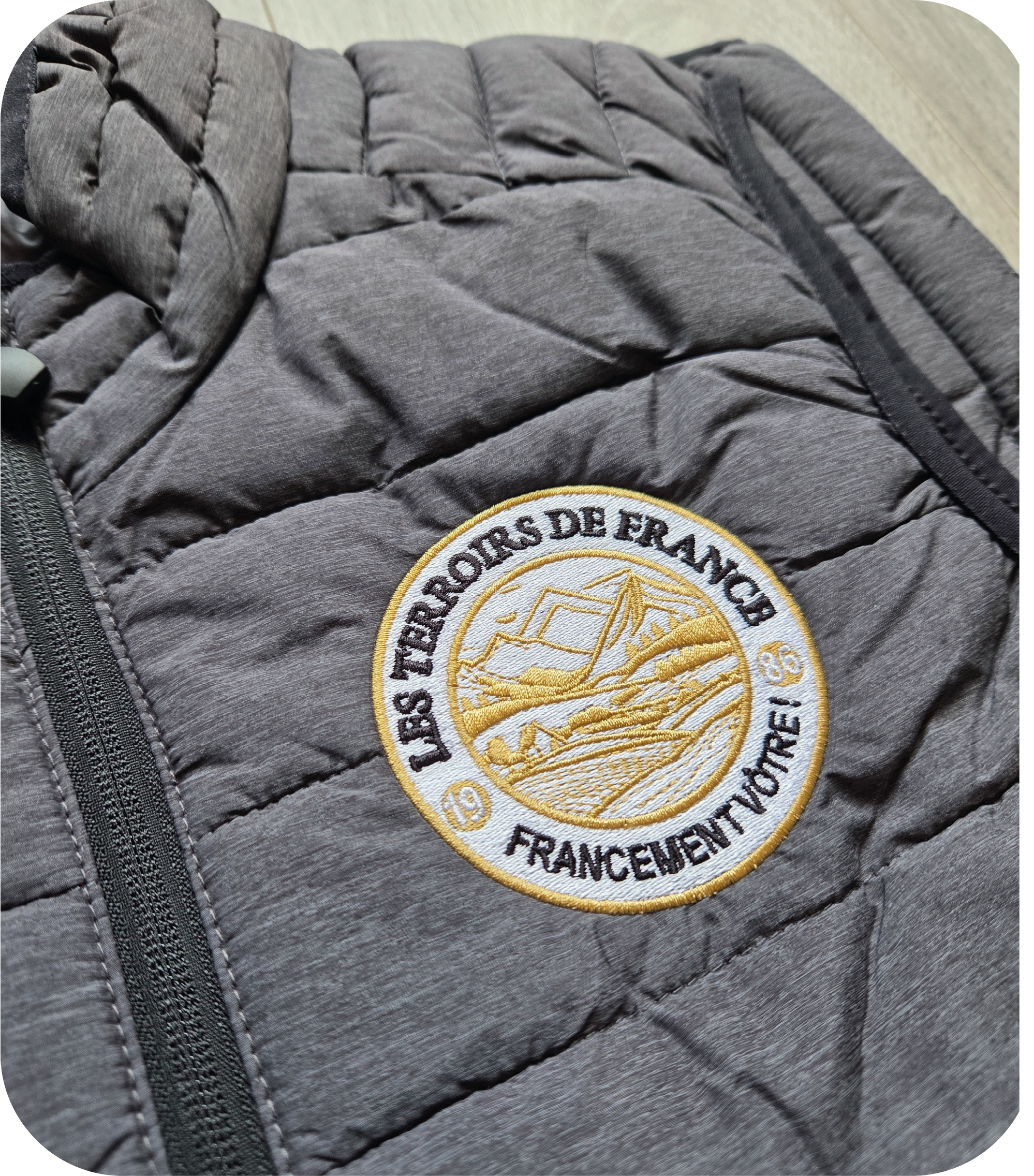 Adaptable à une large gamme de supports. La broderie convient aussi bien aux textiles épais comme les sweats, doudounes, vestes, qu’à des accessoires tels que les sacs et bonnets.
